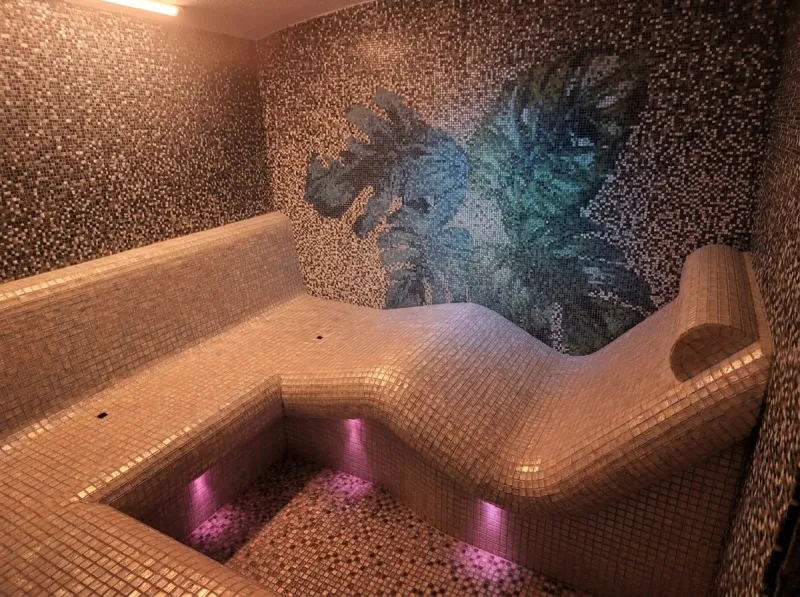 Parní lázeň může mít mnoho různých podob, záleží na možnostech prostoru, který máte k dispozici, na stylu, který vám vyhovuje, a samozřejmě na vašich vlastních představách. Nejčastěji se jedná o menší uzavřený prostor s oblými nebo rovnými lavicemi, kde můžete pohodlně sedět a relaxovat. Důležitou součástí je také strop, často bývá mírně klenutý nebo šikmý, aby po něm mohla kondenzovaná pára přirozeně stékat a nekapala přímo na vás. Protože uvnitř parní komory je vysoká vlhkost, používají se na stěny obklady. Velmi oblíbené jsou mozaiky, které umožňují vytvářet různé barevné kombinace, vzory nebo přechody. Použít lze také větší keramické obklady pro moderní a minimalistický vzhled. Díky širokému výběru materiálů může parní lázeň působit luxusně, přírodně nebo velmi moderně.