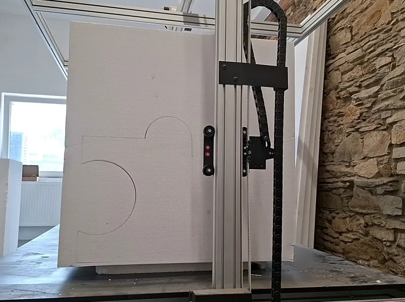 Na základě připraveného návrhu z polystyrenu EPS 200 tepelně vyřežeme jednotlivé díly. Používáme k tomu přesný CNC stroj, díky tomu si můžete vymyslet jakékoli tvary lavic a opěradel. Vše připravíme přesně na míru.