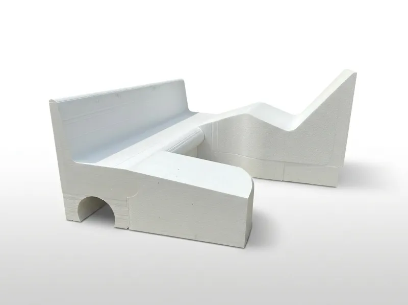Konstrukční prvky jako lavice vyrábíme ze speciálního tvrzeného polystyrenu.